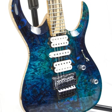 COMMISSIONED || BODY: Black Limba, TOP: 1-piece Poplar Burl, NECK: Curly Maple, FRETBOARD: Ebony, Stainless steel Jumbo fret, SCALE: 25.5", RADIUS: 14", BRIDGE: Hipshot, TUNERS: Hipshot Locking; PICKUPS: Beta Blocker Pickups Set,