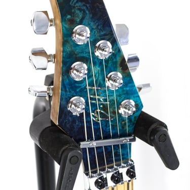 COMMISSIONED || BODY: Swamp Ash, TOP: Poplar Burl, NECK: Rosted Curly Maple, FRETBOARD: Pale Moon Ebony, Stainless steel Jumbo fret, SCALE: 25.5", RADIUS: 16", BRIDGE: Schaller Lockmeister, TUNERS: Schaller Locking; PICKUPS: Suhr SSH+/ML/SSV, 1 Volume, 1 Tone (w/split),
